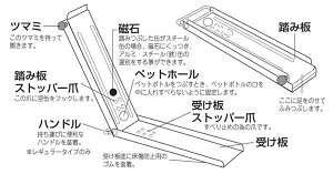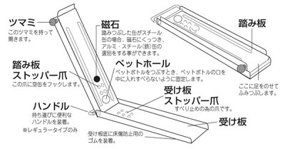 付属の磁石でアルミ缶とスチール缶の選別もでき、ペットボトルもつぶせます。